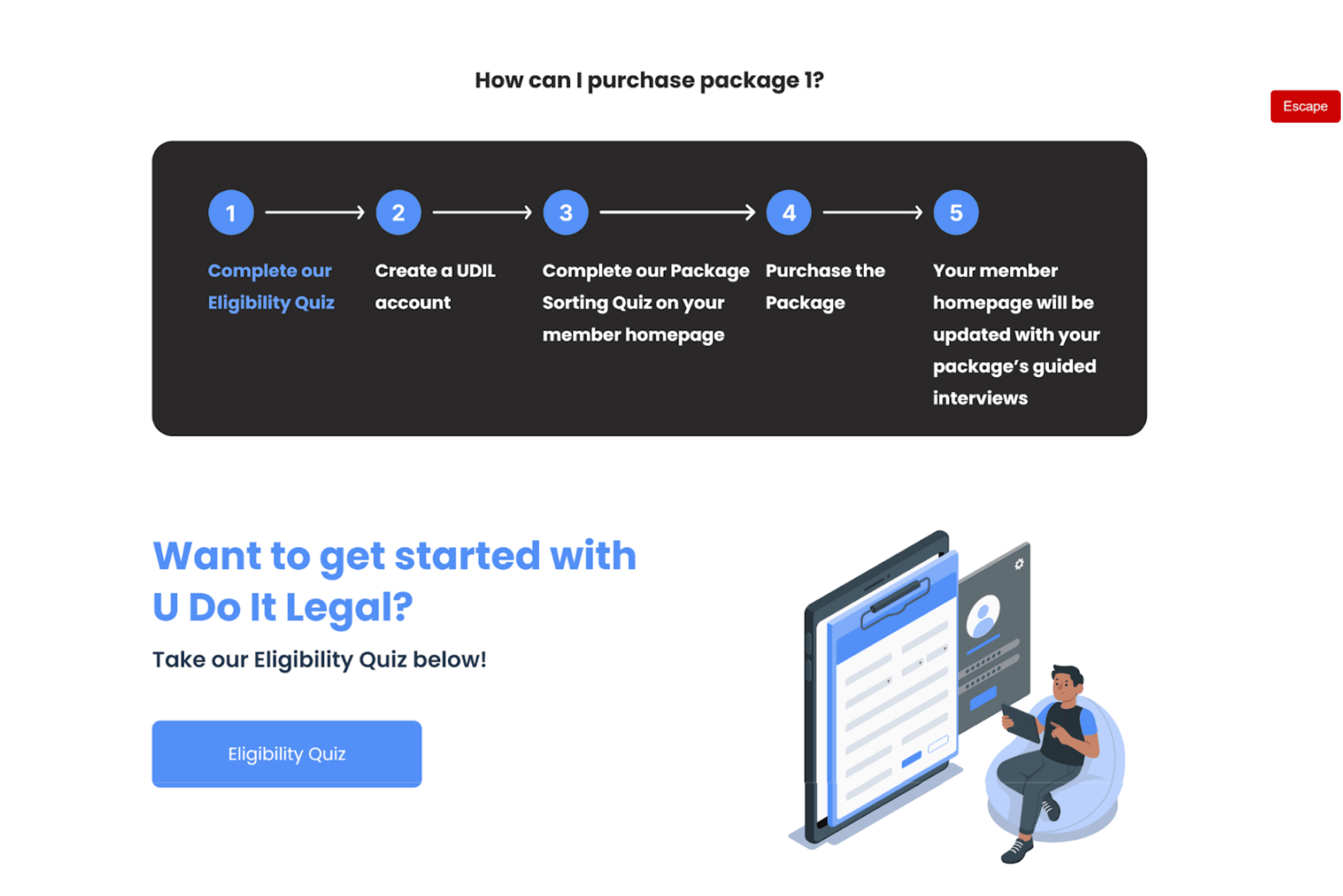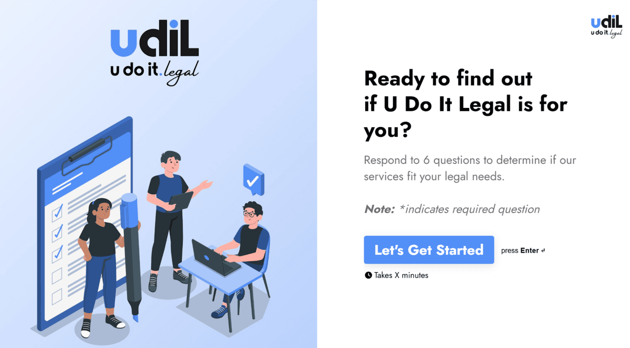 The eligibility quiz, which verifies that users are eligible for UDIL's services.