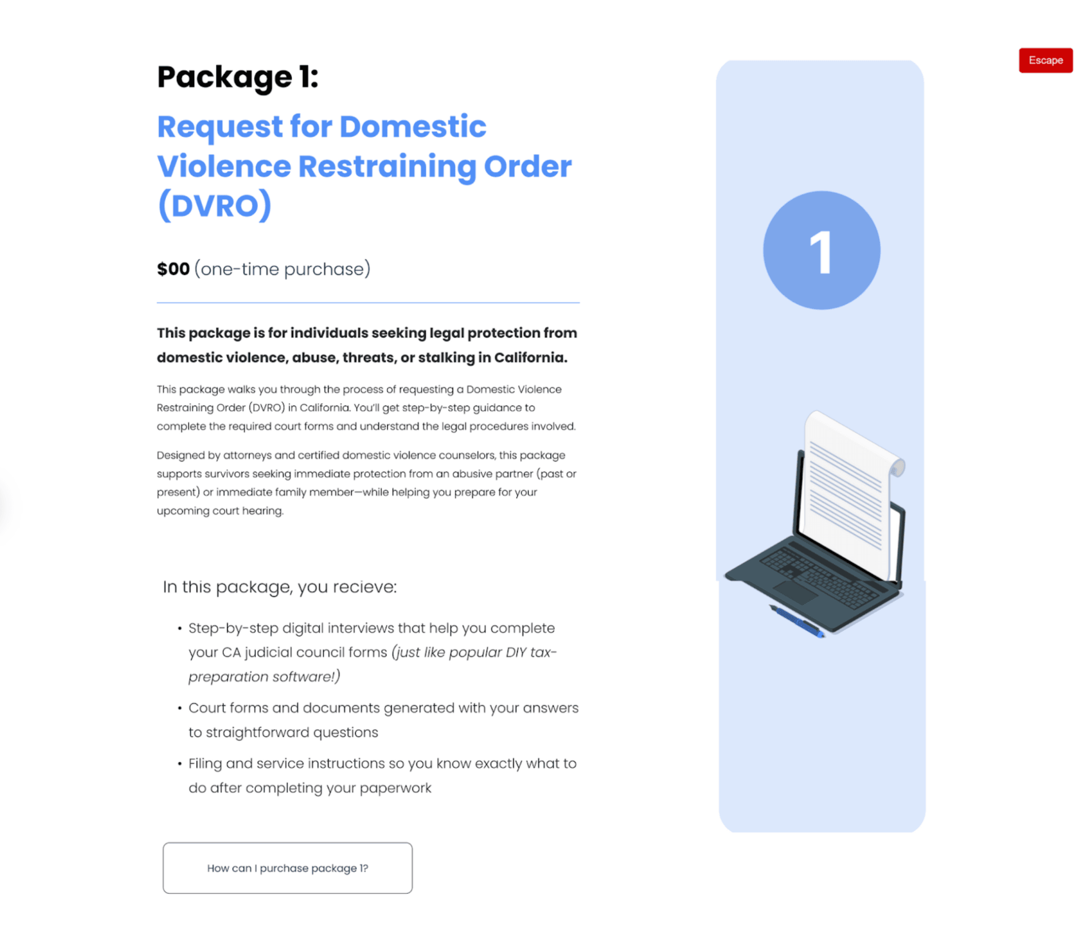 The goal of the firm is to redefine access to justice by simplifying the civil legal self-representation process. Much of this is accomplished through their web application, where there are guided interviews that take users through their cases and populate their court forms.